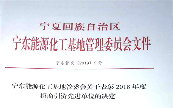 2019年1月 25 日下午, 在寧夏寧東能源化工基地(以下簡稱寧東)召開了2019 年“以商招商”招商引資企業(yè)暨民營企業(yè)發(fā)展項(xiàng)目推進(jìn)座談會(huì)。上海浩登材料股份有限公司子公司——寧夏倬昱新材料科技有限公司(以下簡稱寧夏倬昱)榮獲 “2018年度寧東招商引資先進(jìn)單位”稱號。